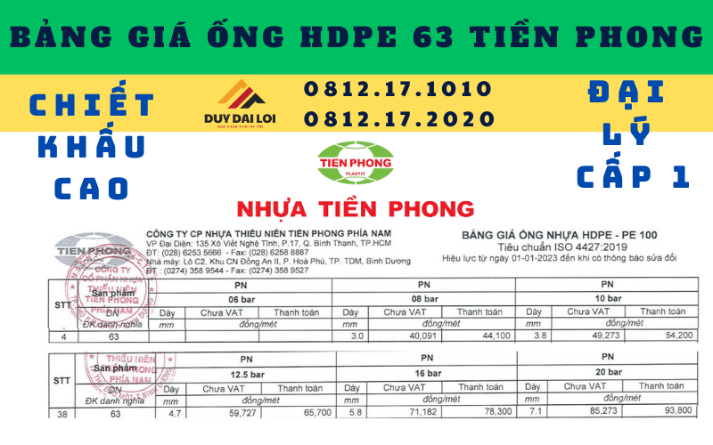 Giúp khách hàng tiếp cận dễ dàng với sản phẩm. NPP Duy Đại Lơi cam kết đảm bảo chất lượng sản phẩm và đáp ứng mọi yêu cầu của khách hàng. Khách hàng có thể liên hệ với NPP Duy Đại Lơi để được tư vấn và nhận báo giá ống HDPE 63 Tiền Phong theo nhu cầu sử dụng của mình.