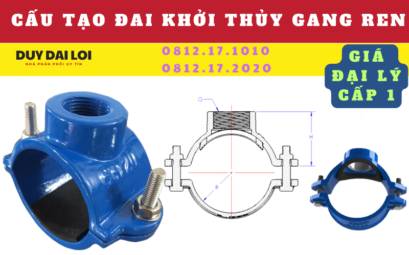 Đai khởi thuỷ gang có cấu tạo đơn giản với các bộ phận kết nối như: