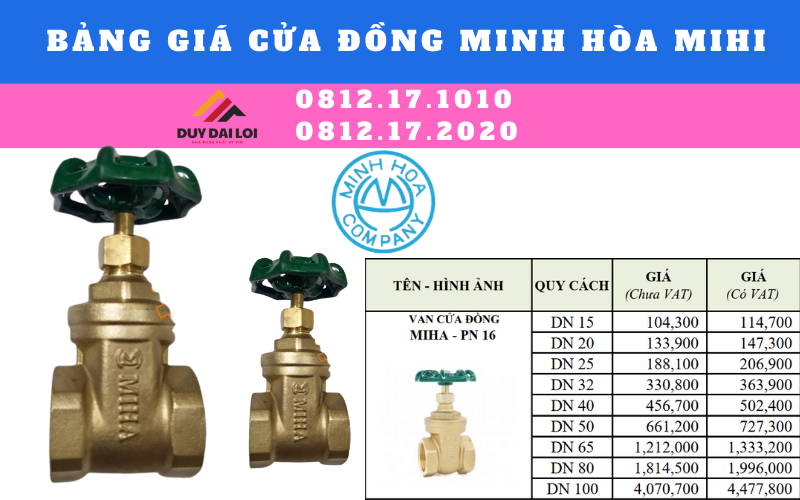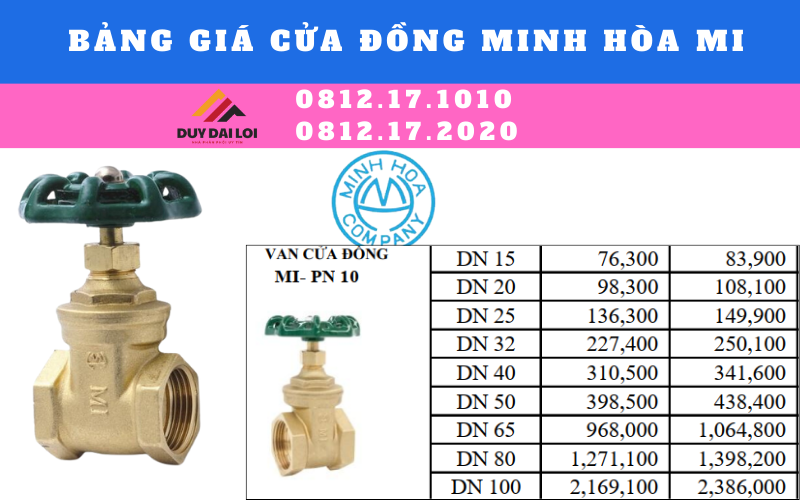 Công ty Duy Đại Lợi chuyên cung cấp sản phẩm vật tư phụ kiện ngành nước, đối với sản phẩm van cửa đồng minh hòa