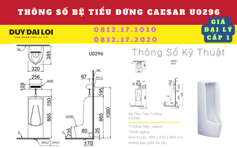 GIÁ BÁN BỆ TIỂU ĐỨNG CAESAR U0296