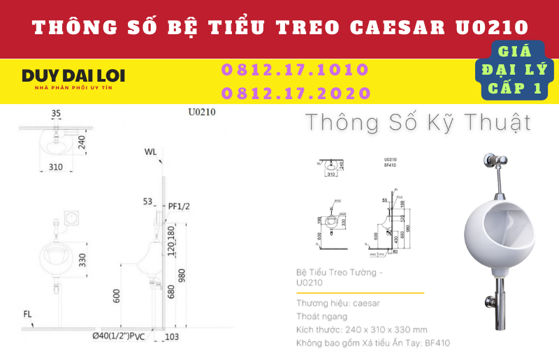 GIÁ BÁN BỆ TIỂU TREO CAESAR UA0210