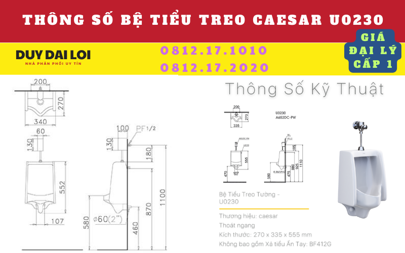 GIÁ BÁN BỆ TIỂU TREO CAESAR U0230