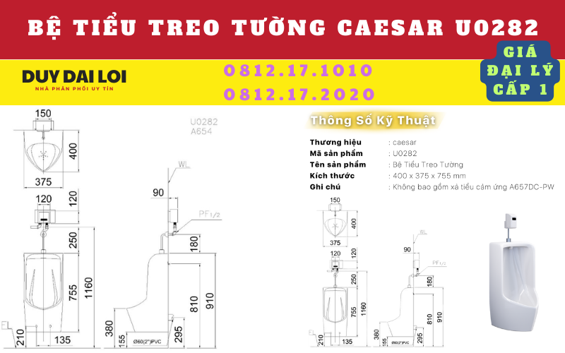 GIÁ BÁN BỆ TIỂU TREO CAESAR U0282