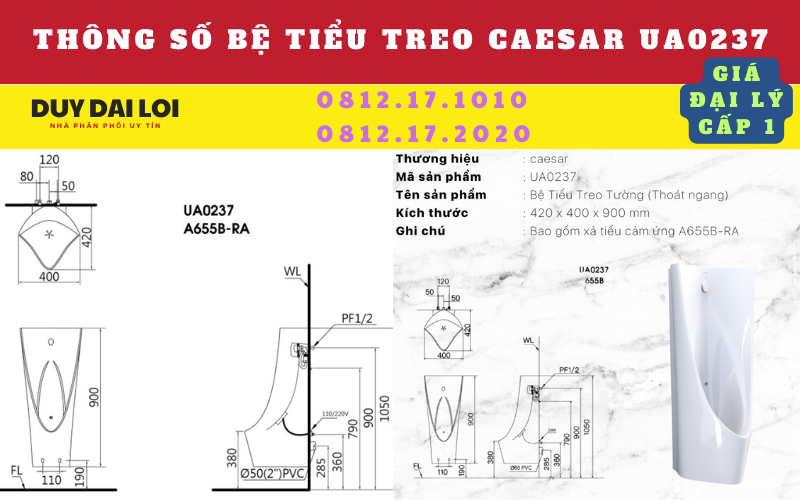 GIÁ BÁN BỆ TIỂU TREO CAESAR UA0237