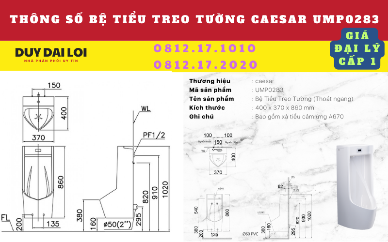 Bệ tiểu treo Caesar UMP0283 chính hãng được cung cấp tại NPP Duy Đại Lợi