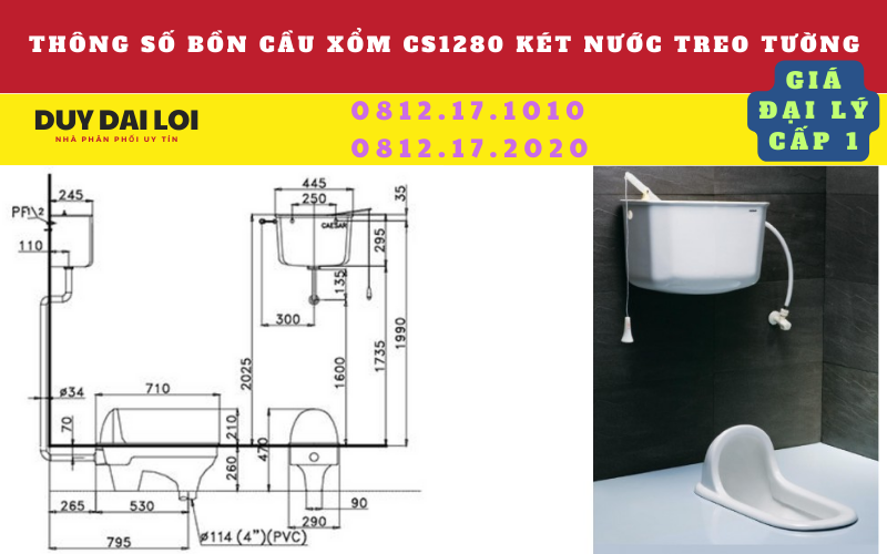 GIÁ BÁN CỦA CẦU XỔM CS1280 CAESAR KÉT NƯỚC TREO TƯỜNG