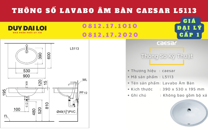 GIÁ BÁN LAVABO ÂM BÀN CAESAR L5113
