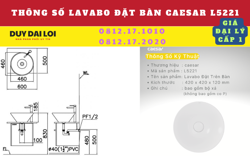 GIÁ BÁN CHẬU LAVABO ĐỂ BÀN CAESAR L5221