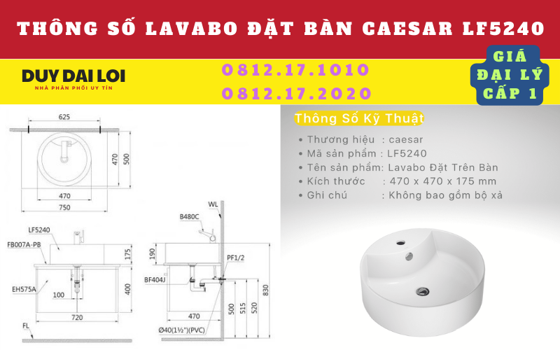 GIÁ BÁN CHẬU LAVABO ĐỂ BÀN CAESAR LF5240