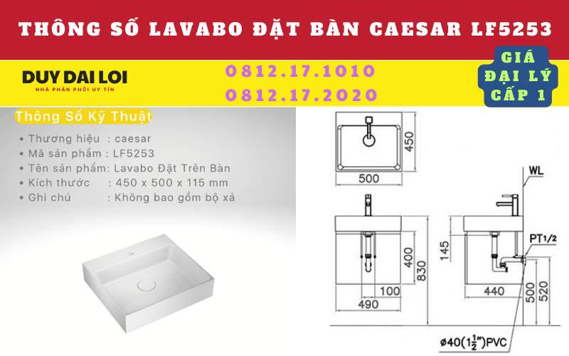 GIÁ BÁN CHẬU LAVABO ĐỂ BÀN CAESAR LF5253