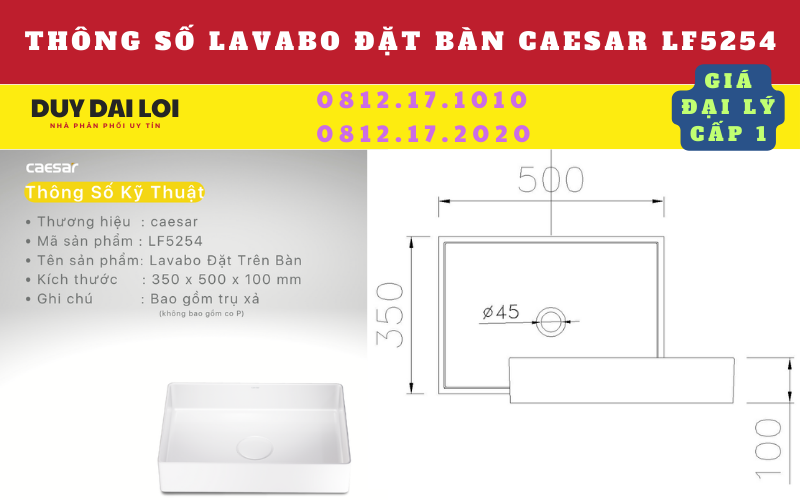 GIÁ BÁN CHẬU LAVABO ĐỂ BÀN CAESAR LF 5254