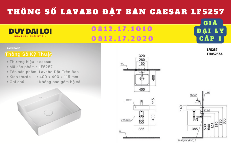 GIÁ BÁN CHẬU LAVABO ĐỂ BÀN CAESAR LF5257