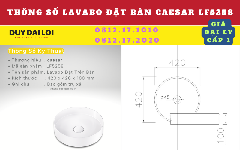 GIÁ BÁN CHẬU LAVABO ĐỂ BÀN CAESAR LF 5258