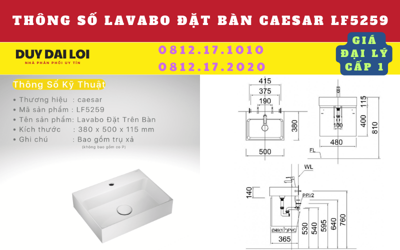 GIÁ BÁN CHẬU LAVABO ĐỂ BÀN CAESAR LF5259