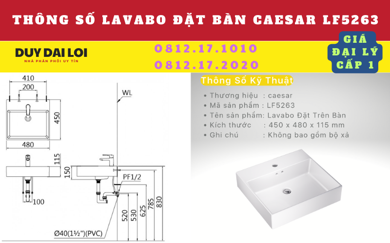 GIÁ BÁN CHẬU LAVABO ĐỂ BÀN CAESAR LF5263