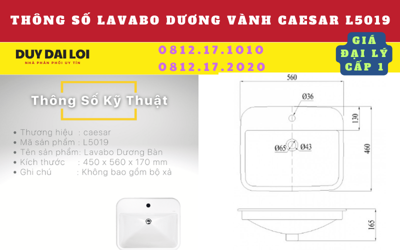 - Lavabo L5019 Caesar chính hãng được cung cấp tại NPP Duy Đại Lợi