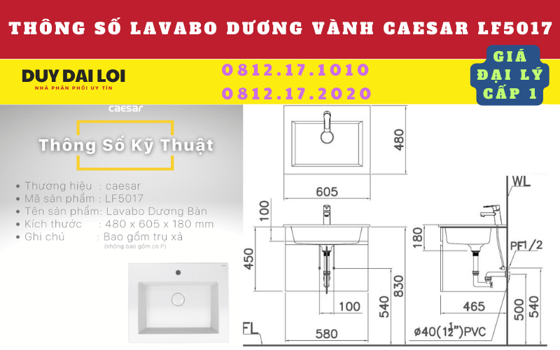 GIÁ BÁN CHẬU LAVABO DƯƠNG VÀNH CAESAR LF5017
