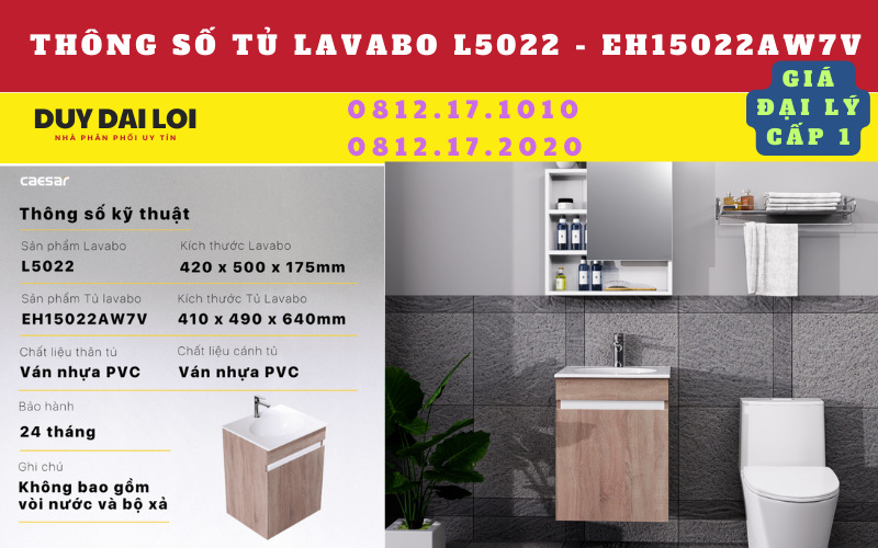 Gía bán tủ lavabo L5022 + EH15022AW7V Caesar/ L5022 + EH15022AW7V Caesar