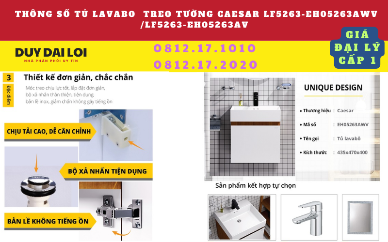 GIÁ BÁN TỦ CHẬU LAVABO TREO TƯỜNG CAESAR LF5263-EH05263AWV /LF5263-EH05263AV