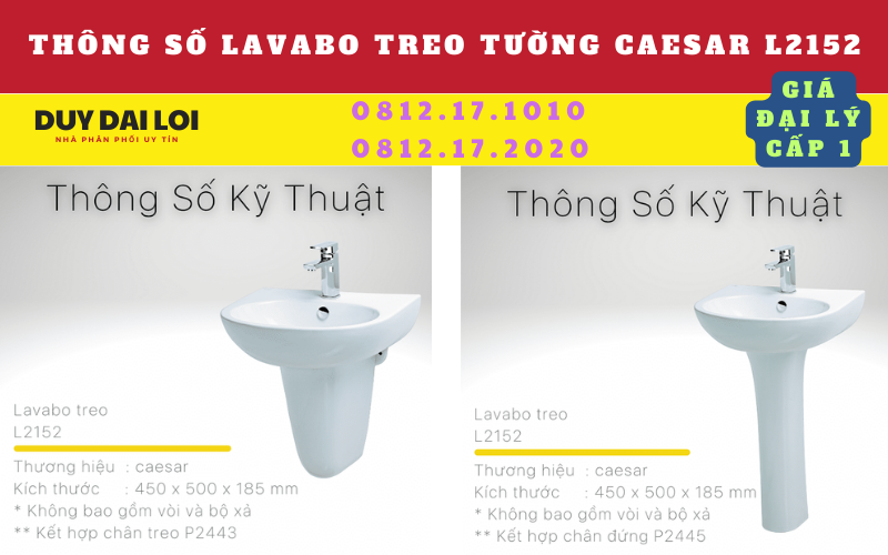- Lavabo L2152 Caesar chính hãng được cung cấp tại NPP Duy Đại Lợi